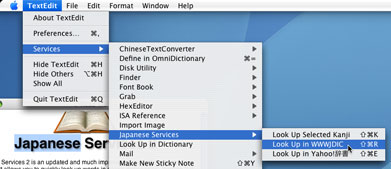 You will need to select the service from the menu if your application defines a shortcut that conflicts with the shortcut key you have assigned to the service. Alternatively, if you are using Mac OS 10.5 or later and have the contextual menu plugin enabled, you can right-click (or hold down the control key and click) on the selected text and choose the services from the "Japanese Services" menu that comes up there.